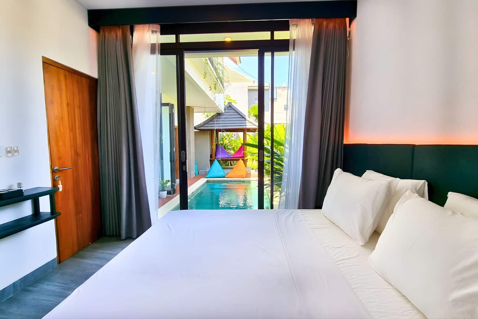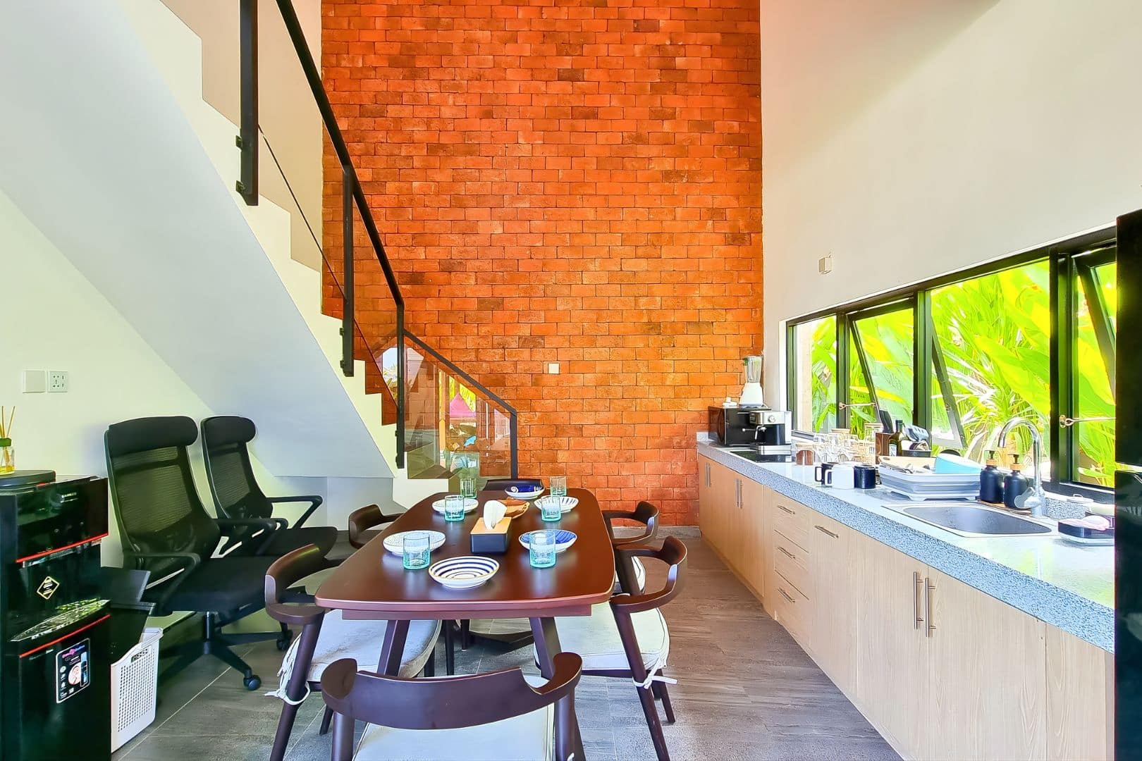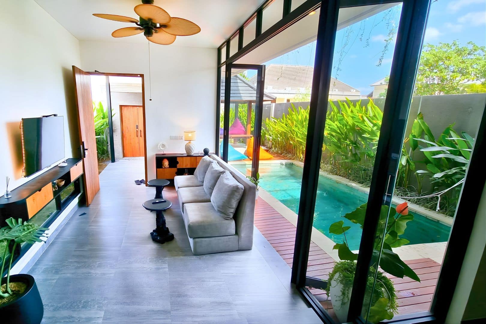 Each bedroom comes with its own ensuite bathroom, while the enclosed, air-conditioned living space ensures comfort all day long. Built with remote work in mind, the villa features four ergonomic workstations, two large LCD monitors, and smart home integration powered by Alexa control lights, AC, and curtains with just your voice. When it’s time to unwind, enjoy access to 11,000+ international channels, including sports and entertainment.