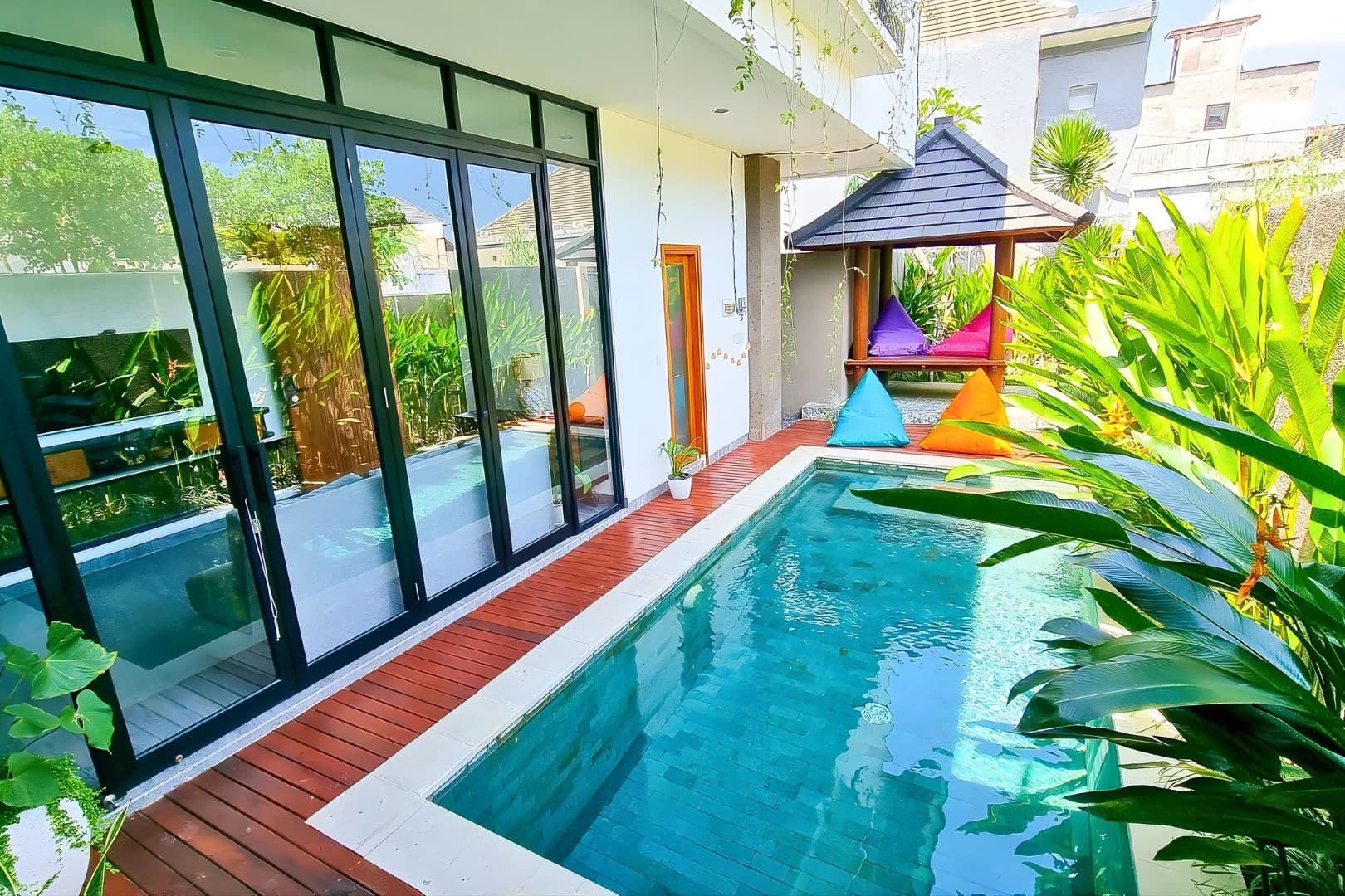 Welcome to Villa Cyber Jungle, a modern 3-bedroom sanctuary designed for those who want to stay productive while enjoying Bali’s tropical lifestyle. Nestled in Umalas, this villa is just 5 minutes away from the vibrant energy of Canggu. It’s the perfect balance between focus and escape.